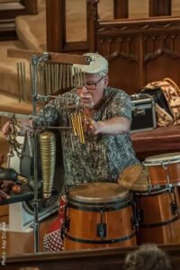 Dan “Dr. D” Schwartz studied African and Afro-Cuban drumming with master drummers Baba Olatunji, Ritchie “Pablo” Landrum (at Berklee), and Giovanni Hidalgo. Since 1971, Dr. D has played and/or recorded with Bobby Carreiro’s Space Clinic, Bobby Greene and Coleus (20 years), Tavares, Stan Strickland, Rick Britto, Len Perry, Chris Richards, Dori Rubbicco, John Harrison, Armsted Christian’s Peaceful Flight, the Walker Band, Street Dancers’ Bash (with Tanya Hart), the Southcoast Jazz Orchestra, and the Southcoast Brass Band and others. Dan also provided the sound for Dr John Myerson’s Shaman workshops. He has also led his own drumming workshops entitled Demystifying the Drum, and Beyond Meditation. Having been part of the area’s music community for over 50 years, he said “I am amazed at the number of talented artists and musicians in the area, and I am honored to be part of it”. Dan is also a retired Acupuncturist and Herbalist, having practiced for almost 40 years.